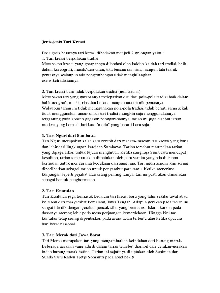 / Tuliskan 10 Macam Tari Kreasi Baru Berpolakan Tradisi / Modul 6 Uniknya Tarian Daerahku Pdf Free Download : Tari ronggeng blantek diciptakan pada tahun 1985 oleh wiwiek widyastuti.