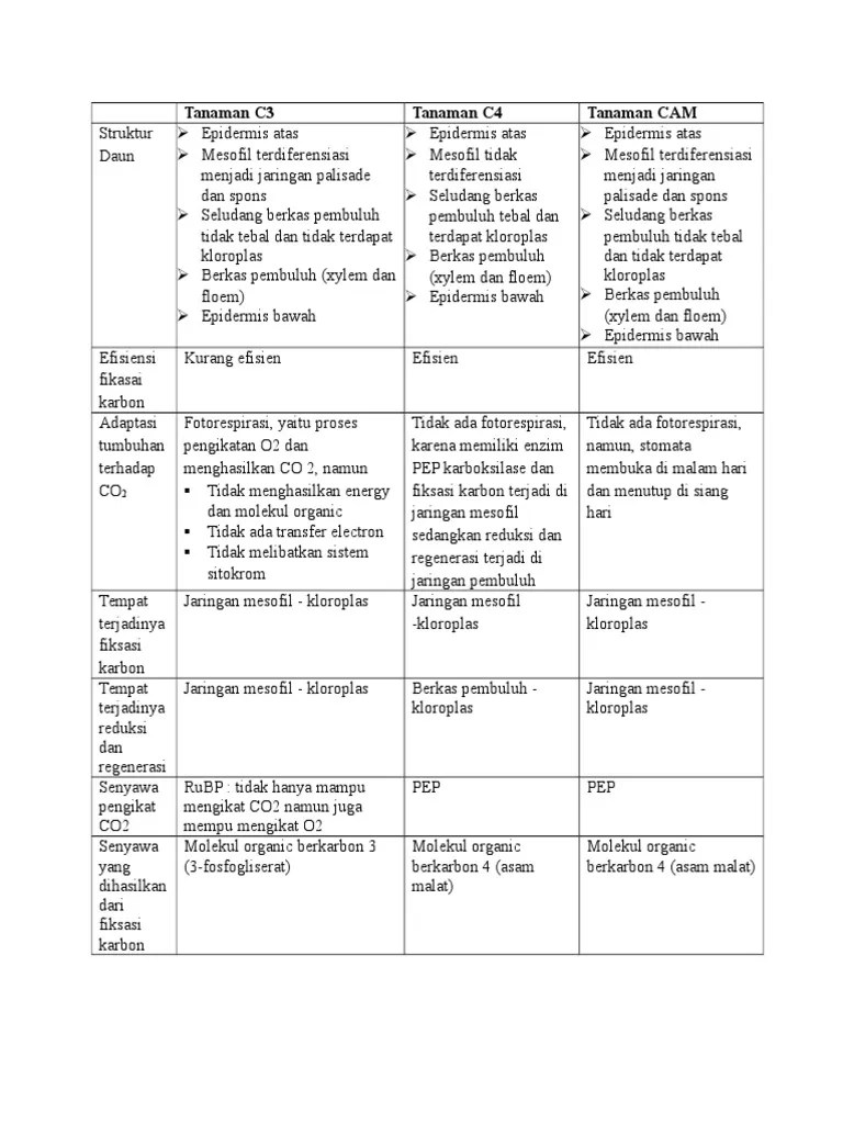 Tabel Perbedaan Tanaman C3 C4 Dan Cam - Doc Perbedaan Tanaman C3 C4 Dan Cam Anisa Agustin Academia Edu : Perbedaan tanaman c3, c4 dan cam.. C3, c4, cam (crassulacean acid metabolism). Perbedaan tersebut dapat dilihat pada table di bawah ini. Perbedaan proses fotosintesis pada tumbuhan . Table perbedaan antara tanaman c3, c4 dan cam. Perbedaan antar tumbuhan tersebut dapat dilihat pada table di bawah ini.