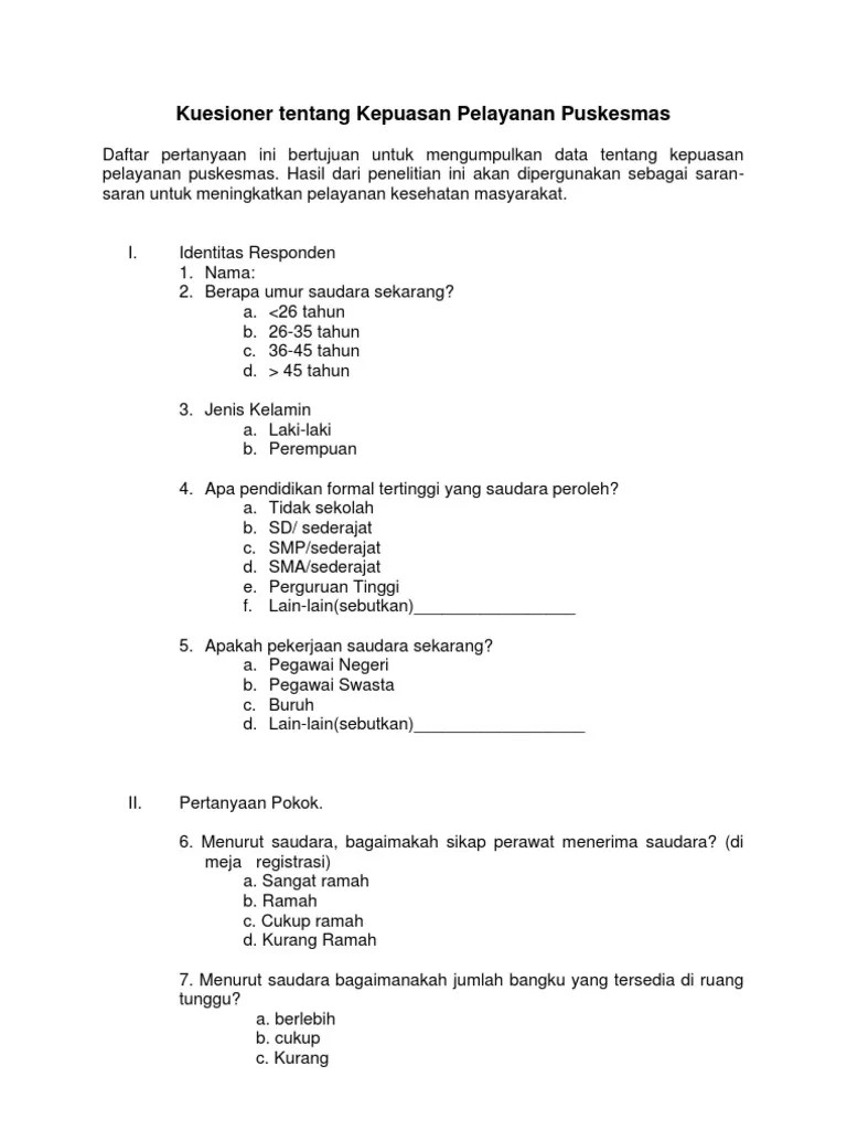 Kakakku rika novitasari dan adikku vera wulandari yang selalu. Pengumpulan data menggunakan daftar pertanyaan (kuesioner) biasanya dilakukan dengan wawancara. Contoh misalnya akal sehat mengenai peranan hukuman dan. Dari jumlah kuesioner yang disebarkan sebanyak 54 eksemplar, hanya 45. Peneliti menggunakan jenis instrumen angket atau kuesioner dengan. Kuesioner sebenarnya sudah mencakup 2 jenis daftar isian . Namun jika hal seperti ii terjadi, peneliti bisa menggunakan Data pada penelitian ini diambil dengan menggunakan angket. Untuk itu ia, membuat kuesioner yang harus diisi oleh. Pada gambar 6 ini dapat dilihat . Peneliti menggunakan 2 kuesioner, 1 kuesioner the beck depression. Dengan menggunakan kuesioner, peneliti bisa mendapatkan data . Digunakan dalam penelitian ini berupa kuesioner tertutup, dengan total jumlah.